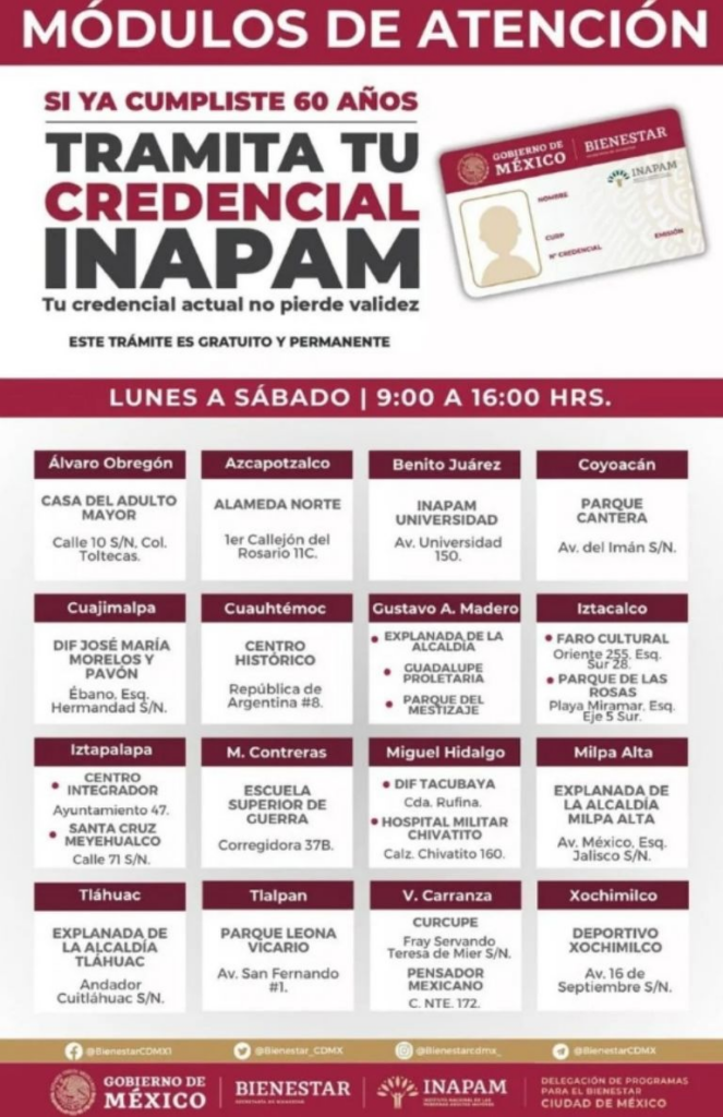 - Localización de Módulos para Tramitar la Tarjeta INAPAM CDMX