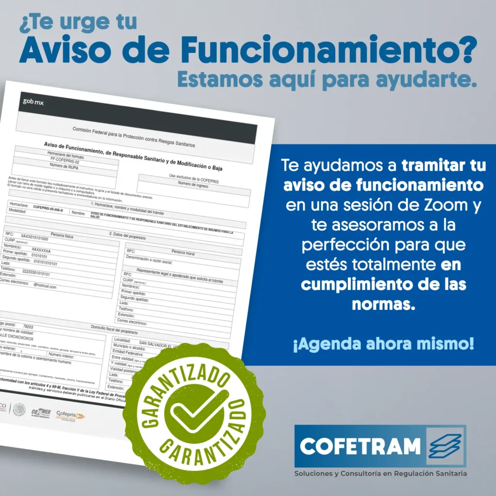 Obtener y mantener un aviso de funcionamiento es crucial para la operación legal y responsable de tu negocio. Asegurarse de cumplir con todos los requisitos te ayudará a evitar problemas con la autoridad sanitaria y a mantener la confianza de tus clientes.